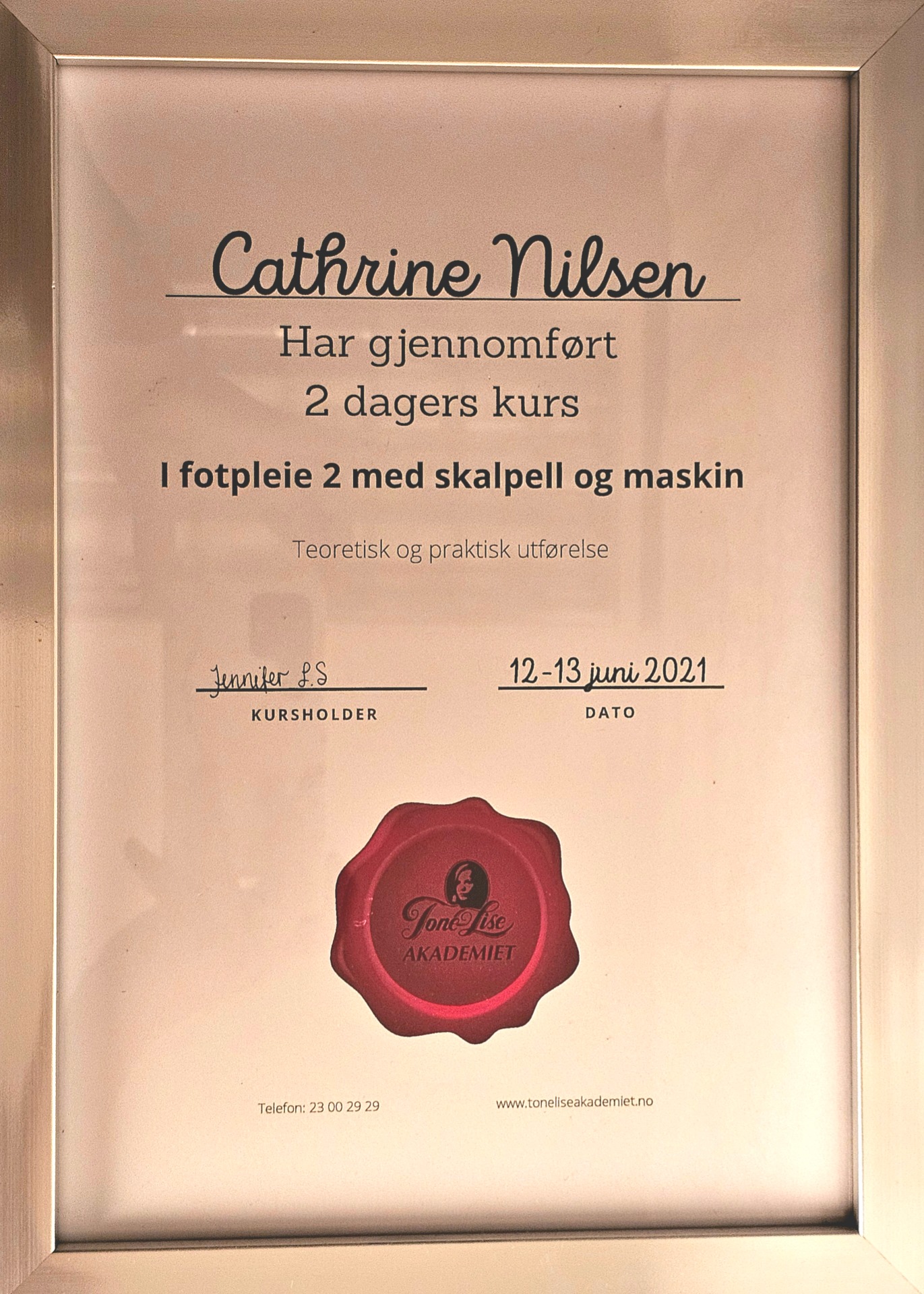 Da jeg hadde drevet noen måneder, tok jeg ennå et fotpleie kurs, da i skalpell og maskin.